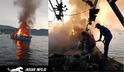 Personel Ditpolairud Polda Sulut Berhasil Padamkan Kebakaran Kapal KM Maranatha 04 di Selat Lembeh