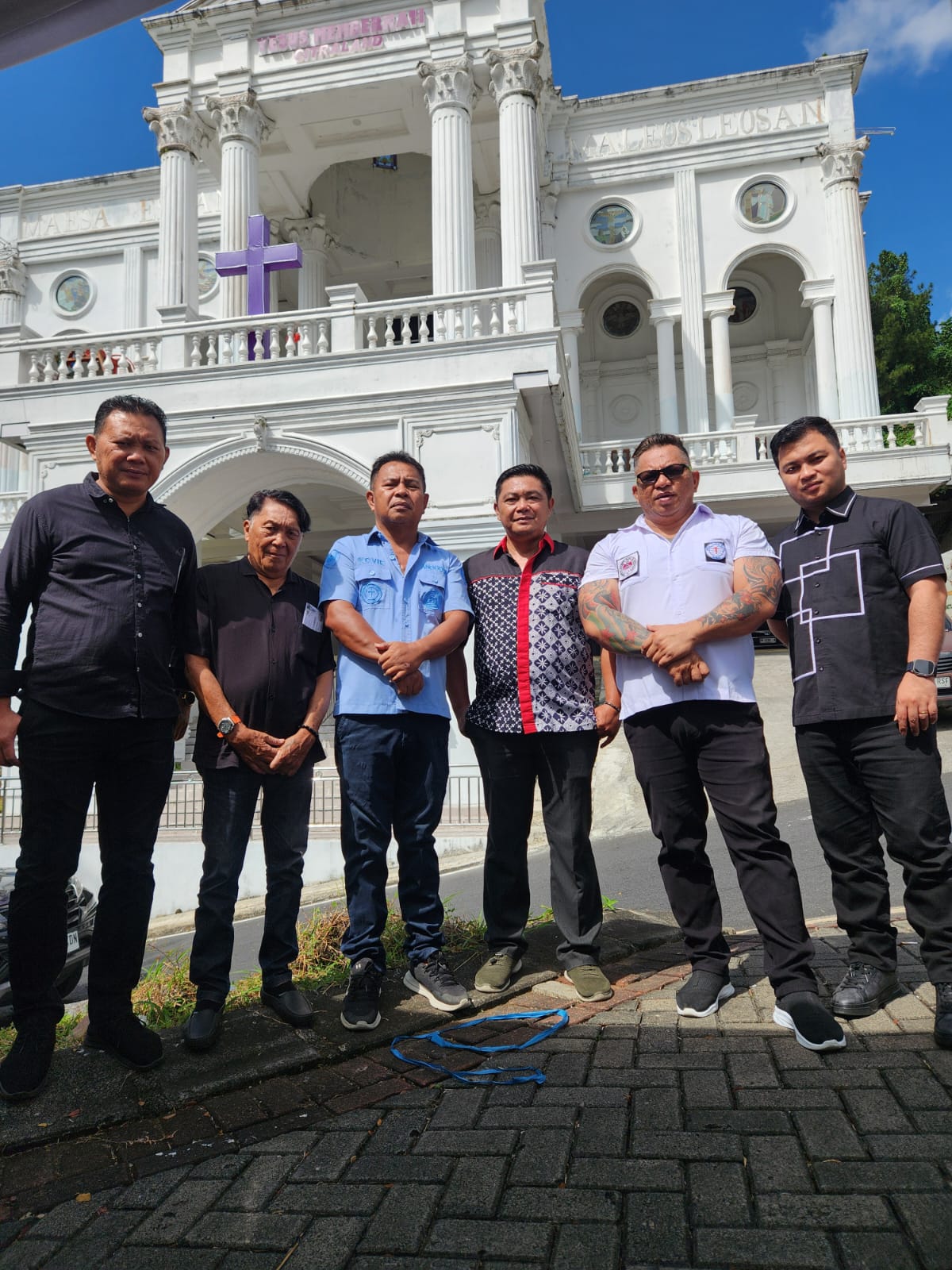 ​Selama kegiatan berlangsung, suasana gereja tetap kondusif dan tertib. Personel Panji Yosua GMIM Yesus Memberkati Citraland berjaga di sekitar lokasi untuk memastikan keamanan jemaat. Kehadiran mereka memberikan rasa nyaman bagi warga gereja yang mengikuti perjamuan kudus serta seluruh rangkaian prosesi hingga selesai.