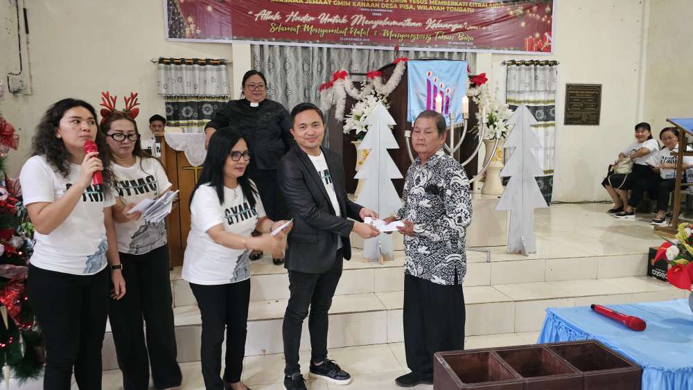 Ibadah Natal ini dilaksanakan bersama warga Jemaat GMIM Kanaan Pisa, Kabupaten Minahasa Tenggara, dan diikuti dengan antusias oleh jemaat serta masyarakat setempat, Sabtu 13/12/25.