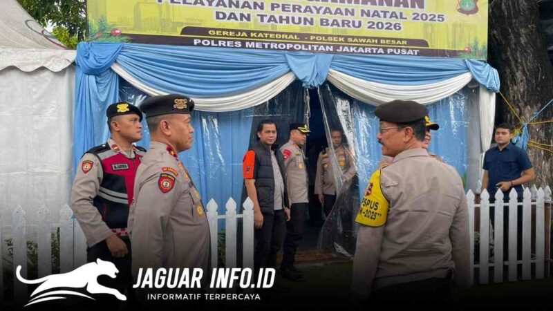 Jaguarinfo.id, Jakarta — Polri terus memastikan kesiapan pengamanan perayaan Natal 2025 dan Tahun Baru 2026 melalui Pelayanan Terpadu 2025. Hal tersebut dilakukan dengan pengecekan langsung ke sejumlah tempat ibadah dan objek vital oleh Kakorsabhara Baharkam Polri Irjen Pol. Drs. Mulia Hasudungan Ritonga selaku Kepala Operasi Pusat (Kaopspus) Ops Lilin 2025, didampingi Direktur Samapta Korsabhara Baharkam Polri Brigjen Pol. Dr. Mokhamad Ngajib selaku Kasatgas Preventif Ops Lilin 2025, pada Sabtu (20/12/2025).