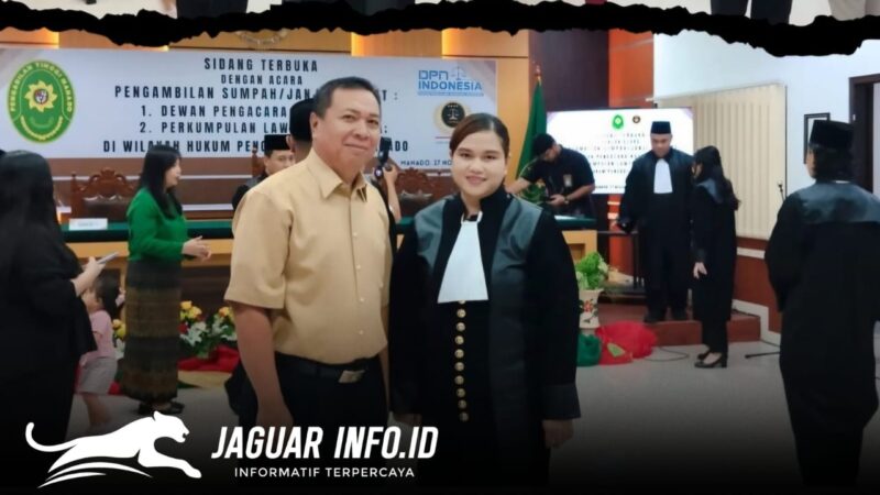Jaguarinfo.id, Manado – Generasi baru penegak keadilan kembali bertumbuh di Sulawesi Utara. Gabrie Chriesta Agusthie Kansil, S.H resmi menyandang gelar advokat muda setelah mengikuti Sidang Terbuka Pengambilan Sumpah/Janji Advokat Dewan Pengacara Nasional dan Perkumpulan Lawyer Indonesia yang digelar di Pengadilan Tinggi Manado pada 26–27 November 2025.