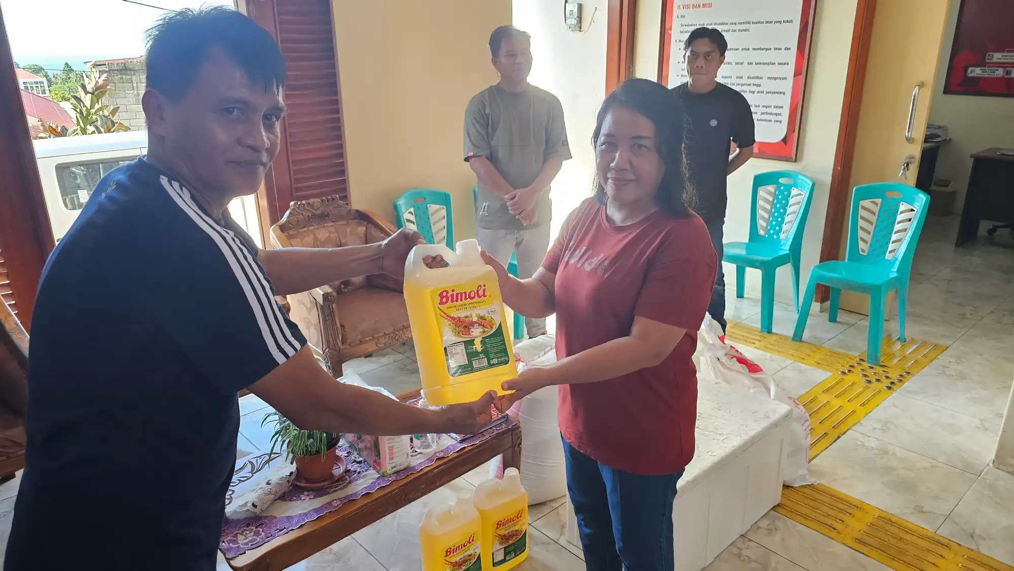 Suasana haru dan kekeluargaan mewarnai proses penyerahan bantuan yang berlangsung secara sederhana namun penuh makna.